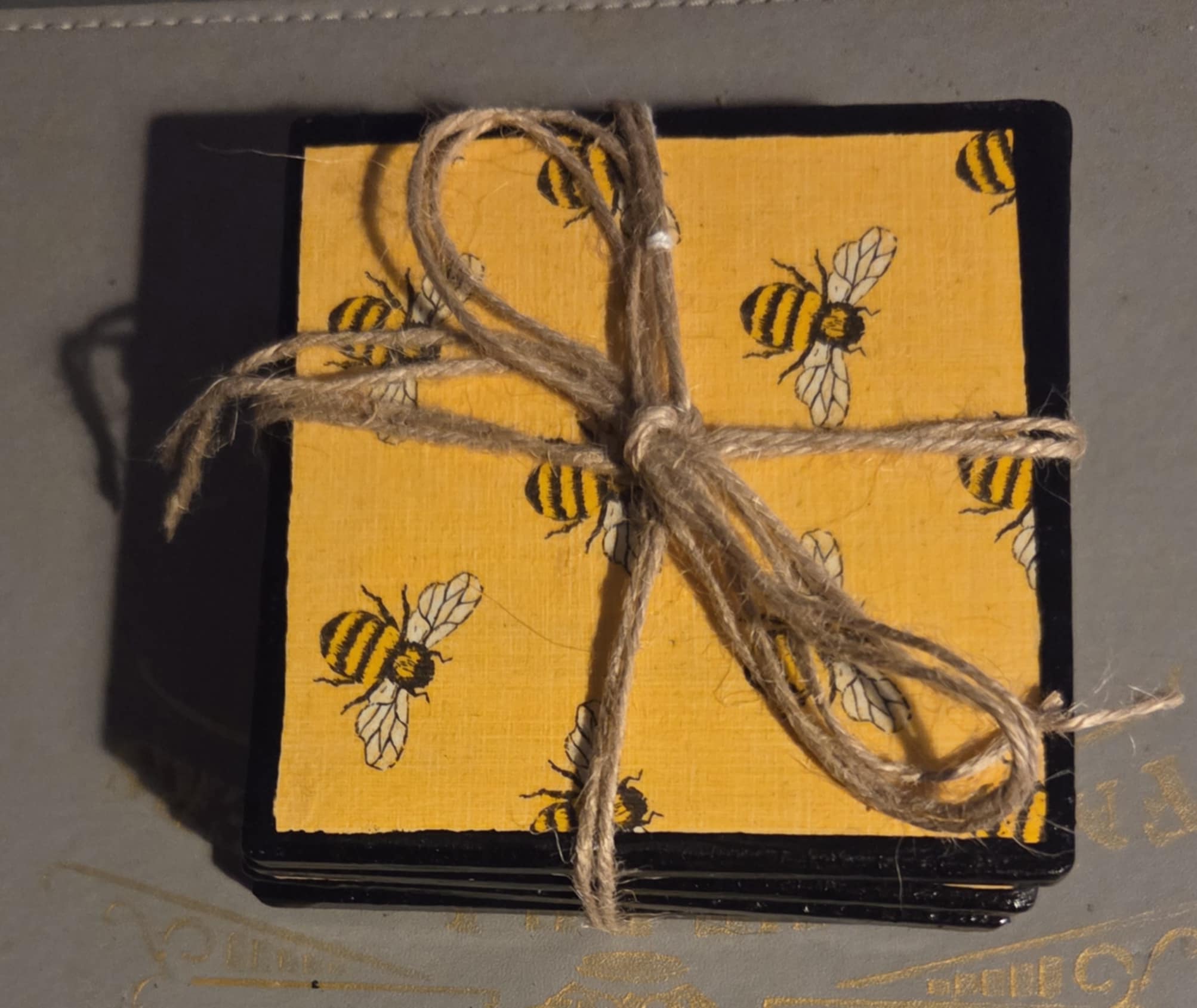 Set of 4 ceramic coasters with collage