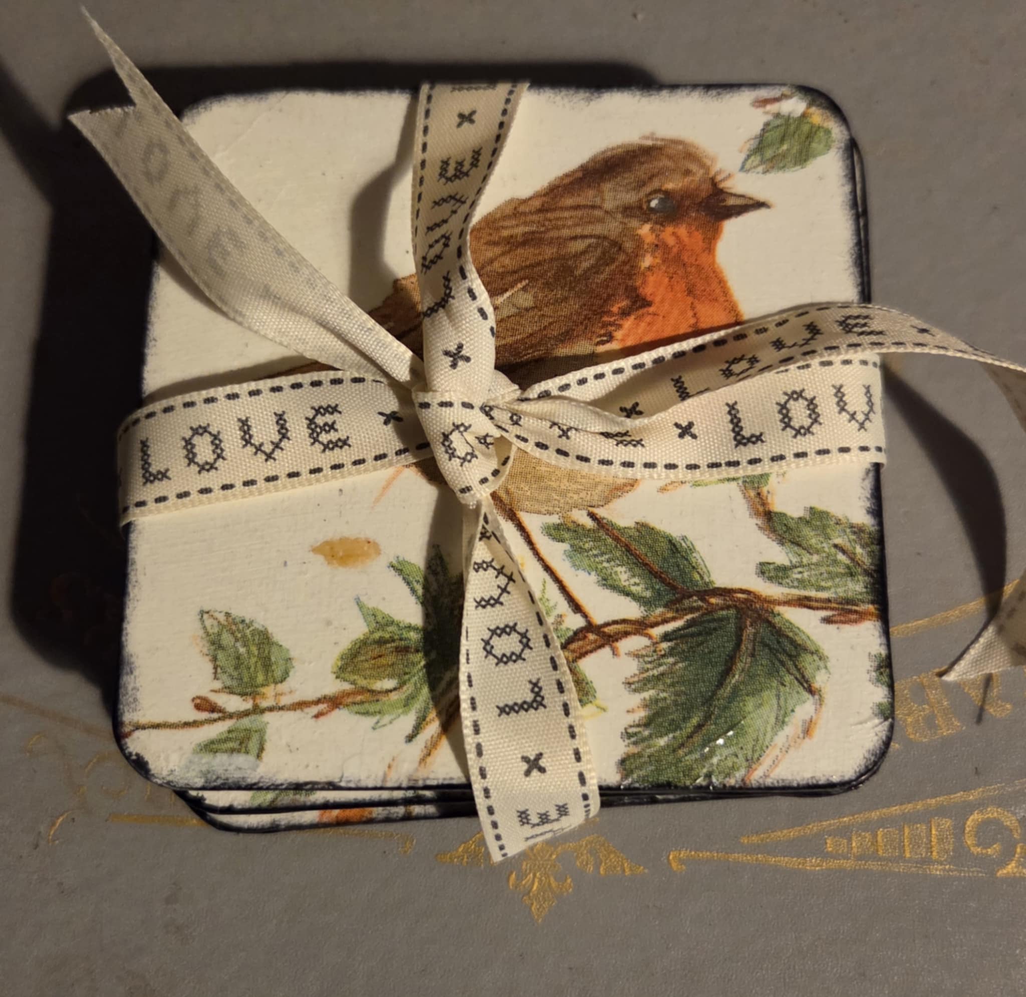 Set of 4 wooden coasters with collage